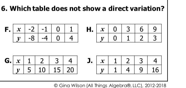 4155 2975 6688 3154 7158 9820 8104 4187 7057 6262 8503 6887 2523. If all the ratios are the same then you have a direct variation. Then identify the equation that represents the relationship.